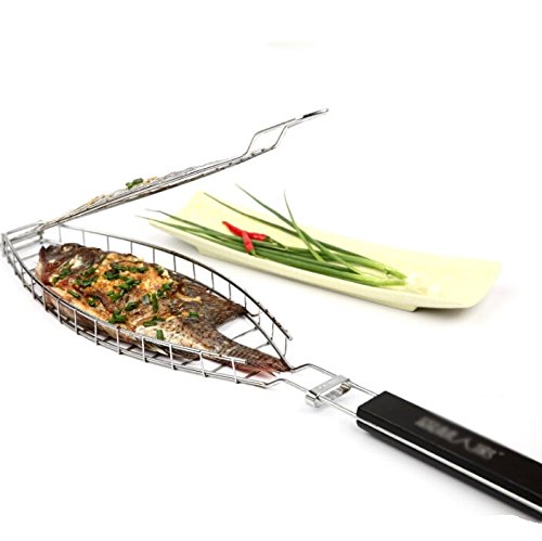 All images of YIXIN Non-Stick BBQ Fish Basket Grilling Baked Fish Barbecue Tool Kit for Meat Vegetable Fruit Outdoor Picnic Accessories, Chrome Finish