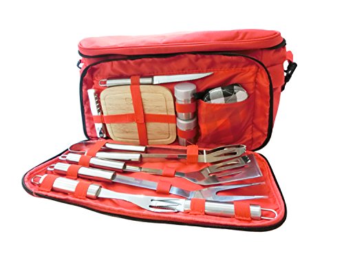 BBQ CHOICE 11pc Stainless Steel Barbecue Tool Set with Insulated Cooler Case - Outdoor Living, Camping, Travel Set