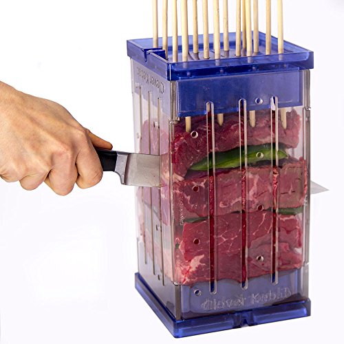 All images of Clever Kebab - 6 in 1 Premium Brochette Maker Tool with Knife Sharpener, Citrus Juicer and Stainless Steel Skewers (Blue)